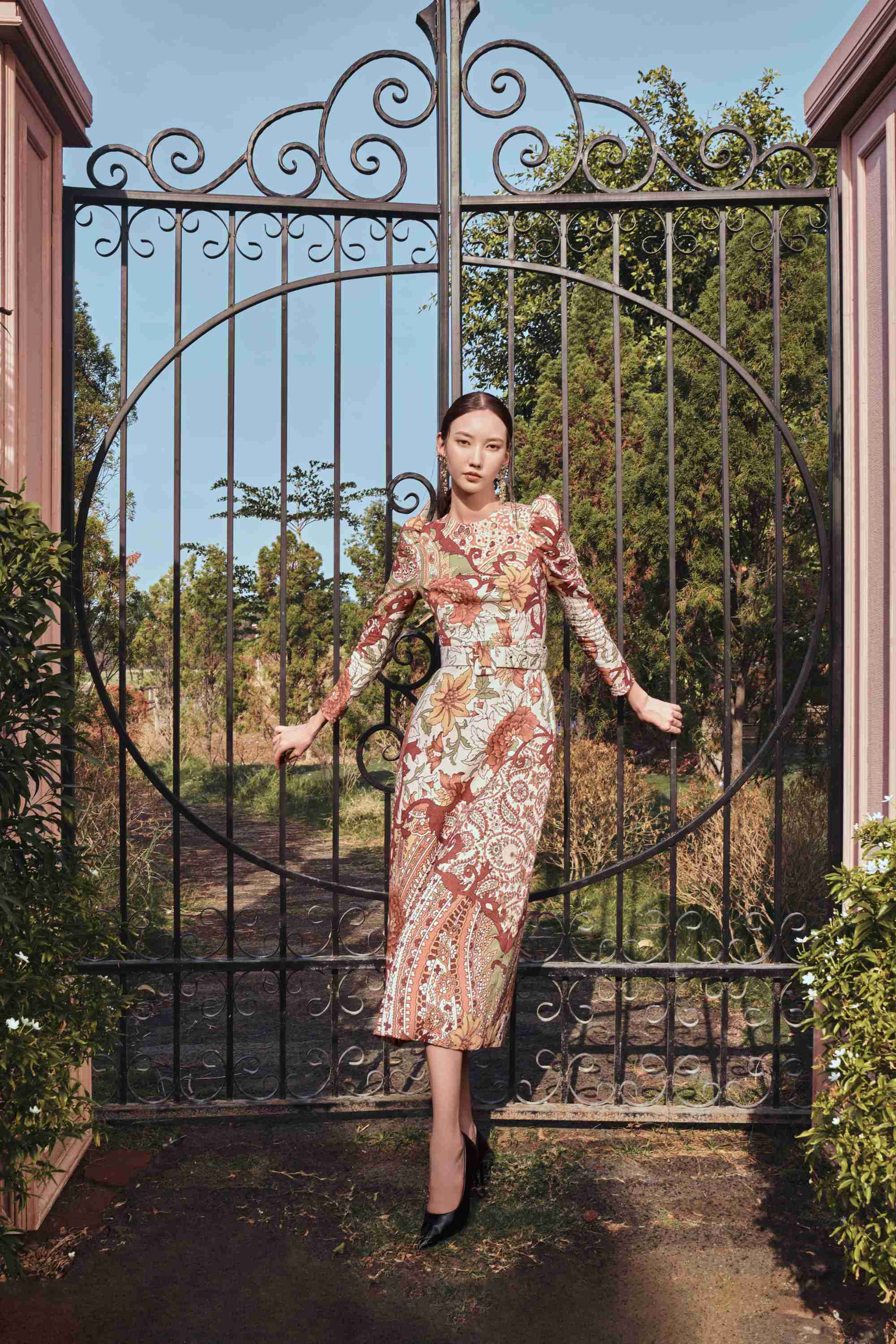 • Open shoulders with pearl buttons for fastening