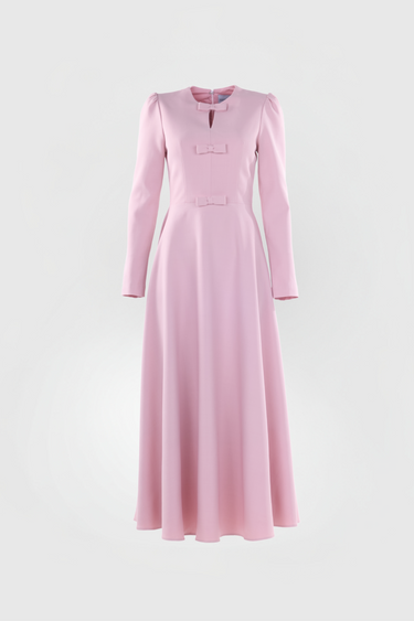 The Oxford Loch Dress from JUSTIN TONG's Enchanted Waters Collection exudes timeless elegance with its soft pink hue and meticulous design. This midi dress features a fitted bodice, an A-line skirt, and refined button embellishments, making it an ideal choice for both formal and semi-formal gatherings.