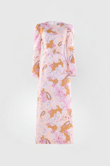The Hazel Maxi Dress from JUSTIN TONG's Enchanted Waters Collection epitomises the elegance with a neutral all-over JT exclusive print. Designed with a high-necked, long-sleeved silhouette, this maxi dress merges traditional craftsmanship with contemporary fashion sensibilities, making it ideal for sophisticated events.