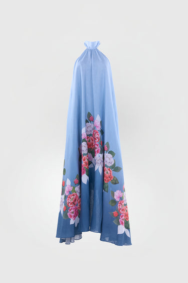 The Misty Glen A-Line Dress from JUSTIN TONG's Enchanted Waters collection is an ode to nature’s fleeting beauty. Reminiscent of a blooming garden at dawn, this halter-neck maxi features an exclusive in-house floral placement print that cascades across the flowing fabric. Crafted from a luxurious linen-silk blend, it offers light and breathable wear while making a statement in elegance and movement. Ideal for garden weddings, open-air soirées, or moments where beauty demands presence.