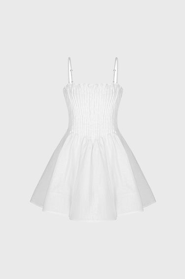 The Ivory Top by TONGÉRA by JUSTIN TONG is a light, sculptural piece designed to bring softness and structure into effortless balance. Featuring a ruched bodice and voluminous flared hem, it frames the silhouette with modern femininity. Delicate straps and gathered details along the neckline add texture and refinement, while the airy shape allows for graceful movement. Perfectly suited for warm days or layered elegance.